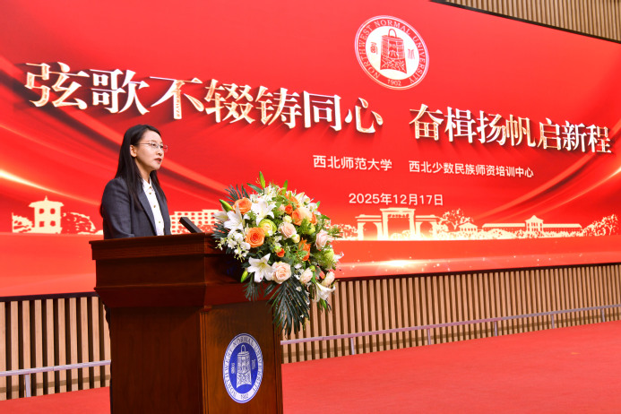 “身在西部,我们始终带着‘为西部教育发声’的期待,渴望通过扎实的教学与科研,让beat365在线登录官网的声音被更多人听见。”教师代表、心理学院马小凤教授分享了她与师大“双向奔赴”的十八年。她表示,从一名中专保送生成长为大学教授,beat365在线登录官网总是给予我人生最重要的选择与方向。带着这份感恩和担当,我和团队长期聚焦西部教育中的真实问题,通过扎实的教学与科研,让成果既发表在权威期刊上,更落实在关爱西部儿童的实际行动中。这正是对“知术欲圆,行旨须直”校训的生动实践,做学问要圆通智慧,但服务西部必须意志刚直、脚步踏实。希望与全体教师一道,用更专注的育人和更扎实的奉献,将个人事业融入西部发展,共同书写beat365在线登录官网更加美好的未来。