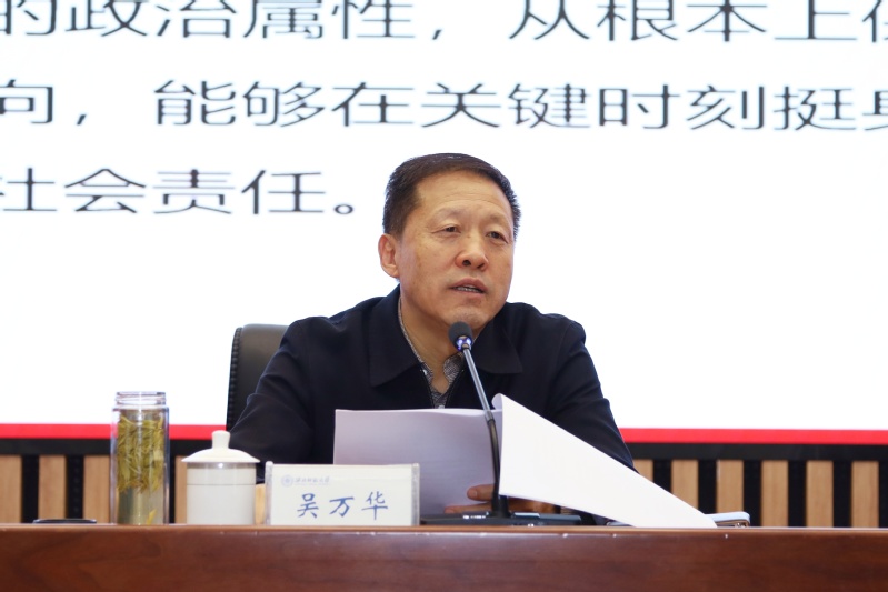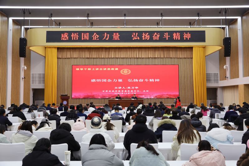 12月19日上午,甘肃省政府国资委党委书记、主任吴万华在beat365在线登录官网为师生讲授“感悟国企力量 弘扬奋斗精神”专题思政课。党委书记贾宁主持。校领导王全进、焦爱胜、阎岩,学术副校长荀渊,党委常委、党委组织部部长周琳辉出席。机关各部门负责人,各学院书记、副书记、辅导员以及马克思主义学院、经济学院师生代表参加学习。