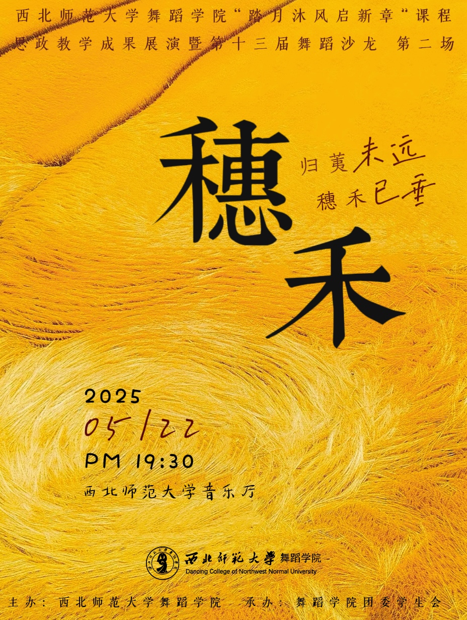 舞蹈学院“踏月沐风启新章”课程思政教学成果展演暨第十三届舞蹈沙龙(二)——《穗禾》时间:2025年5月22日下午19:30地点:beat365在线登录官网音乐厅 -